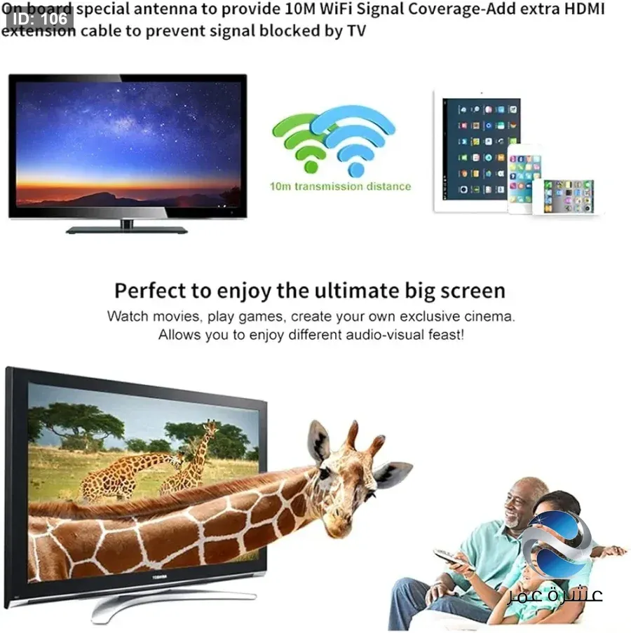 - الغرض: يتيح عرض محتوى الهاتف (فيديو، ألعاب، صور) لاسلكيًا على شاشة التلفزيون الكبيرة