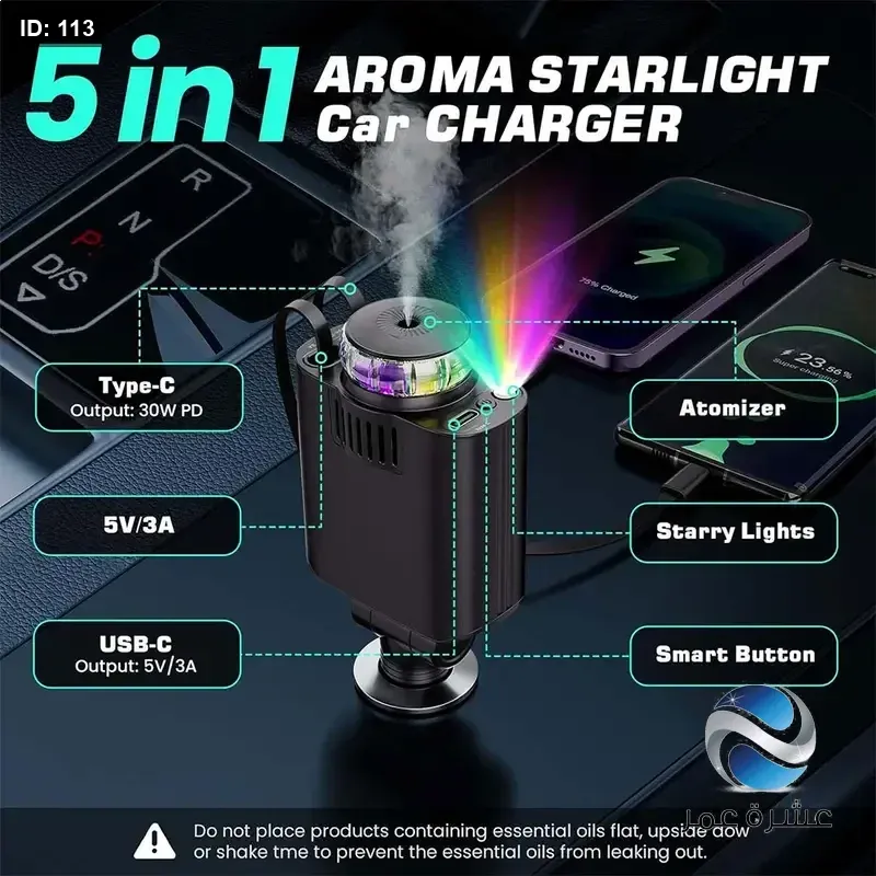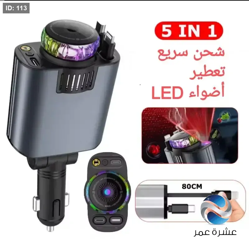 شاحن سيارة متعدد الوظائف 5 في 1 يتميز بما يلي: