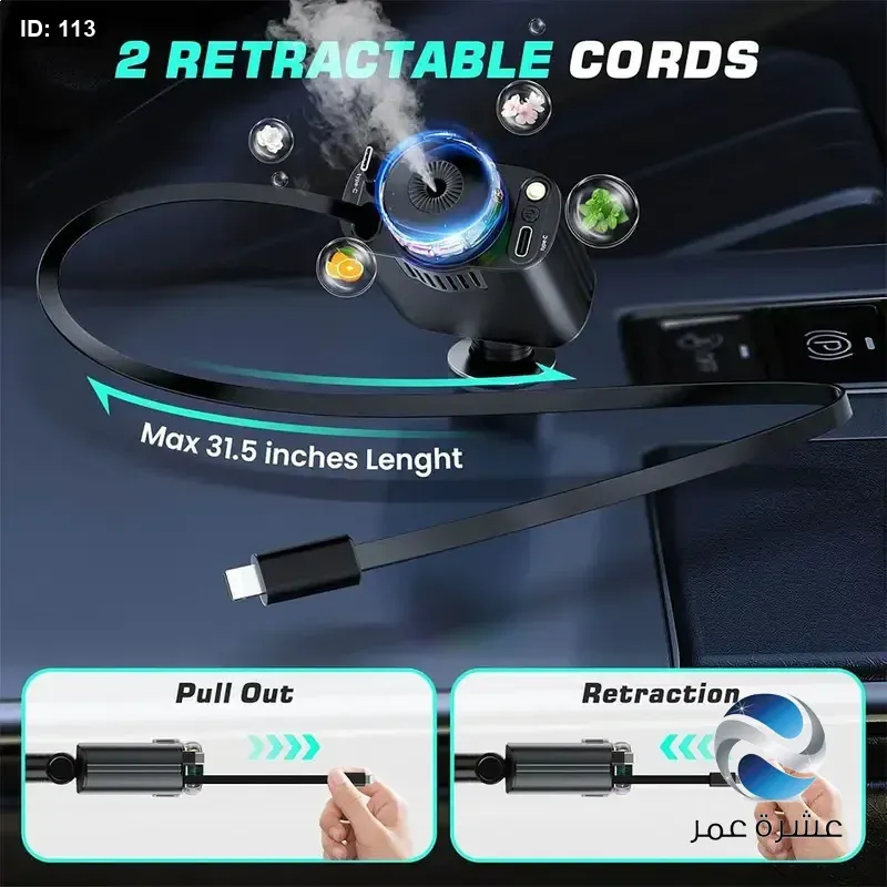 - كابل شحن مدمج قابل للتمدد بأي طول.