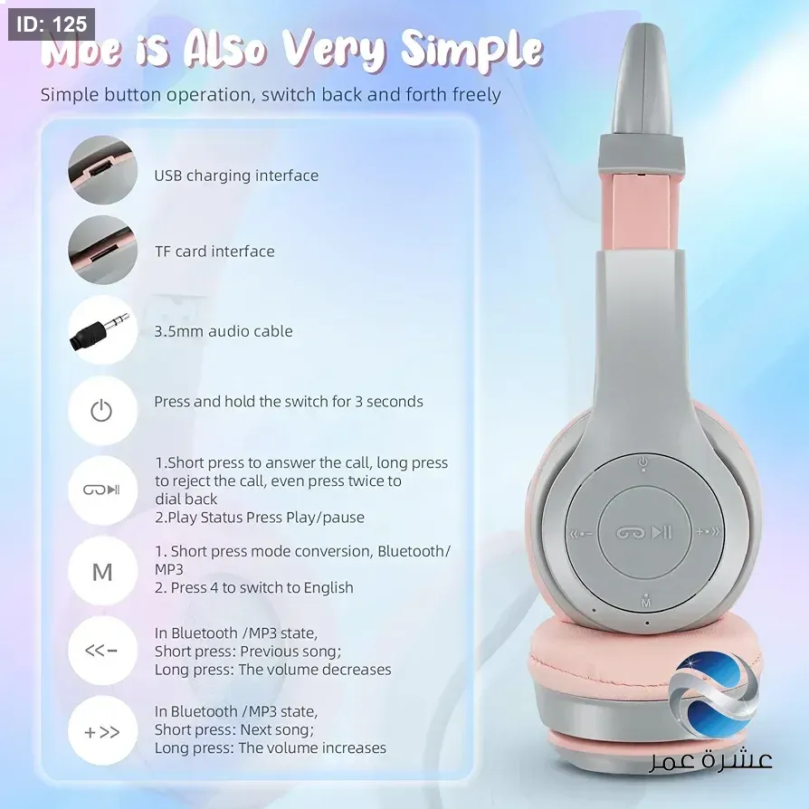 - الميزات: تتضمن ميكروفون مدمج وإضاءة LED على شكل أذن القطة.