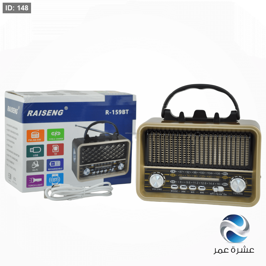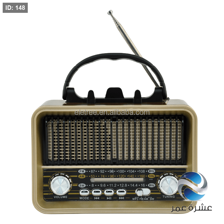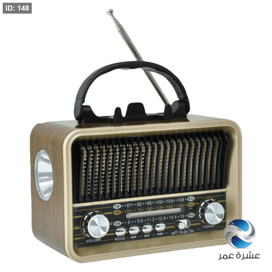- الميزات: راديو FM/AM/SW، بلوتوث (BT)، مدخل USB، مدخل بطاقة TF، ضوء كشاف، قابل لإعادة الشحن.