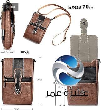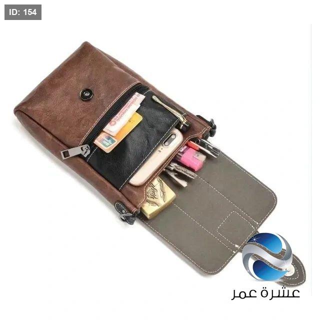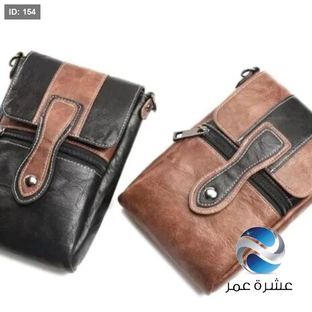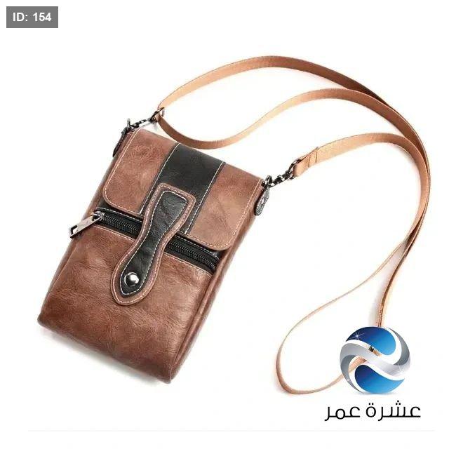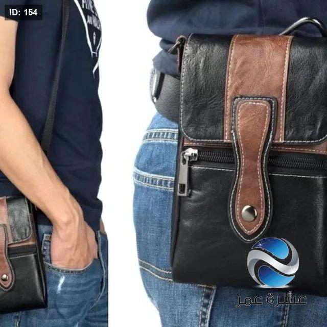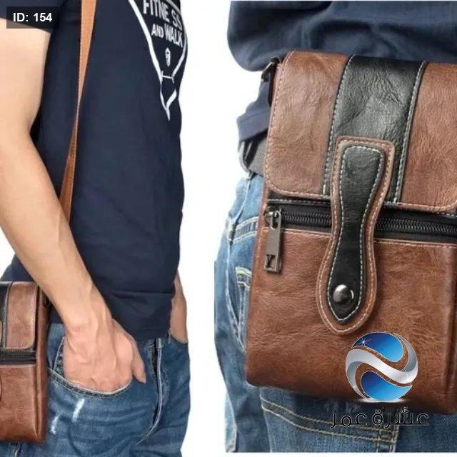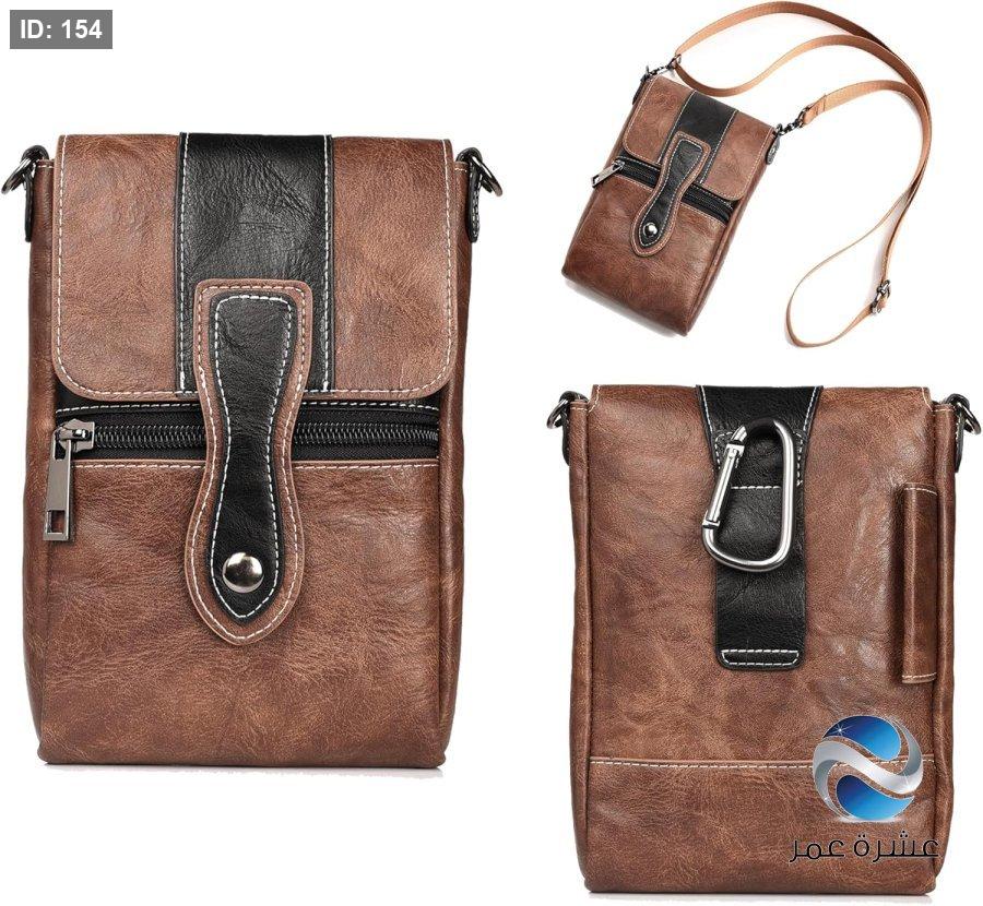 حقيبة يد صغيرة من الجلد بلون بني وأسود يمكن حملها عبر الجسم أو تعليقها على الحزام