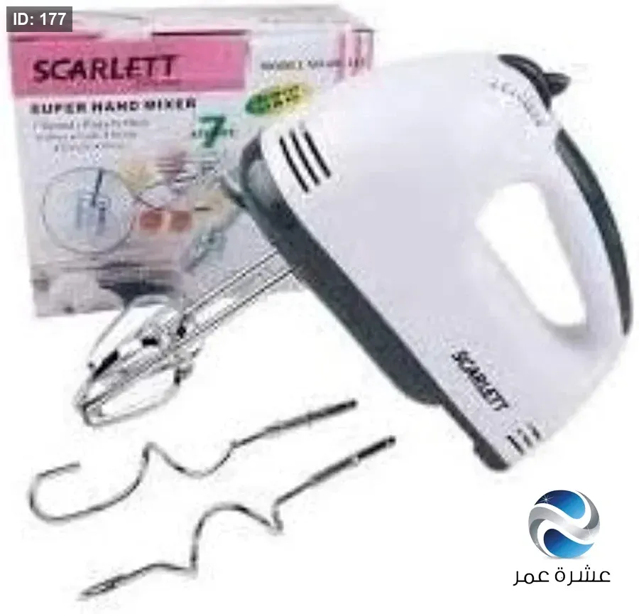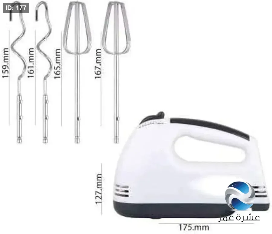 - يأتي مع 4 ملحقات من الفولاذ المقاوم للصدأ (مضربين وخطافين للعجين).