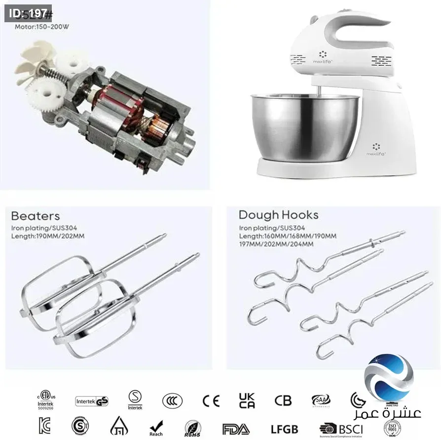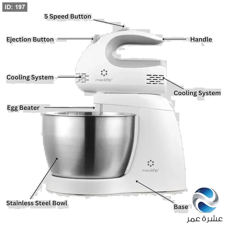 - الميزات: يمكن استخدامه كخلاط يدوي أو مع الوعاء كخلاط قائم.