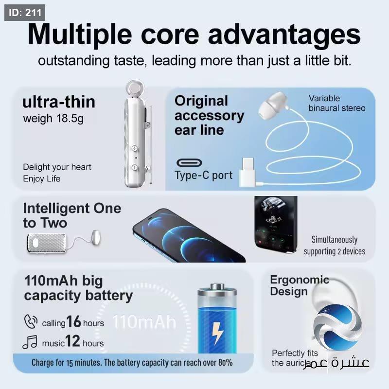 - وقت تحدث يصل إلى 12 ساعة ووقت تشغيل موسيقى يصل إلى 16 ساعة.