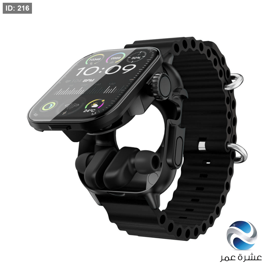 - تصميم 2 في 1 يجمع بين الساعة وسماعات الرأس.