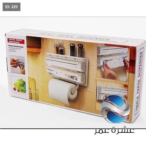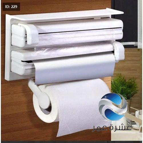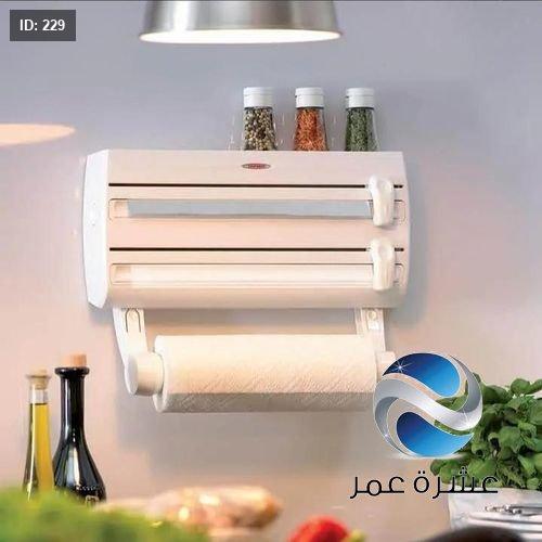 - يجمع بين حامل لفافة مناشف المطبخ وورق الألمنيوم والتغليف البلاستيكي في وحدة واحدة.