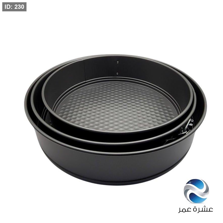 - تتضمن المجموعة قوالب بأقطار 24 سم، 26 سم، و 28 سم.