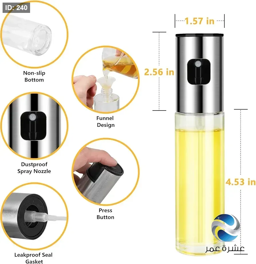 - الاستخدام: مثالي لرش الزيت أو الخل أو السوائل الأخرى للطهي، الشواء، والتحميص.