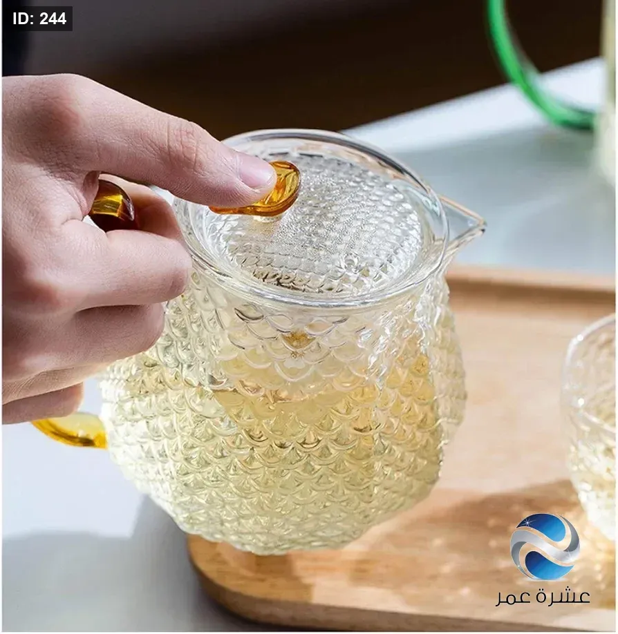 - يتميز بتصميم عصري مع غطاء زجاجي ومقبض ذهبي.
