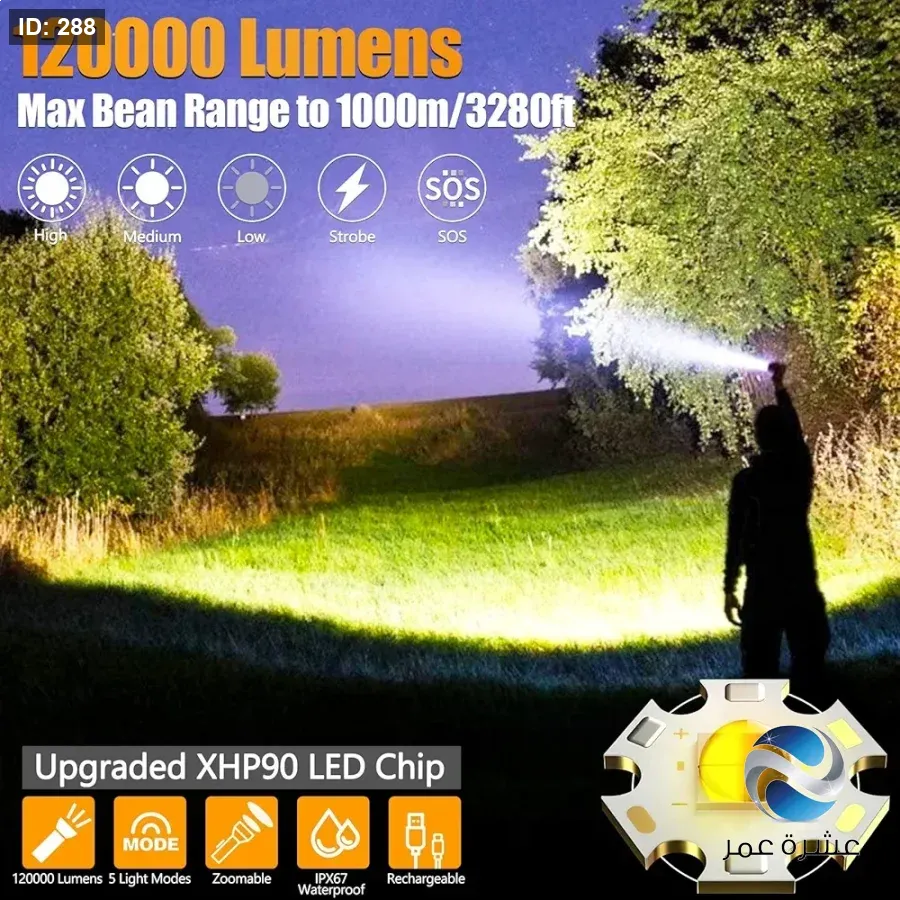 - المميزات: سطوع عالي وشعاع ضوئي قوي.