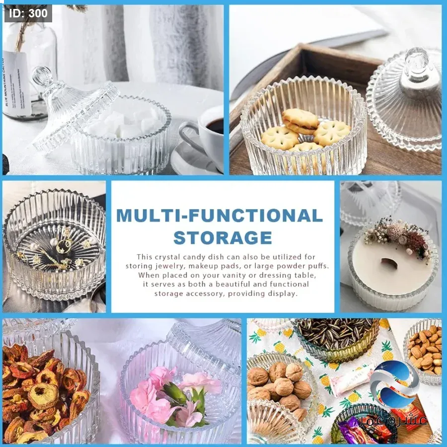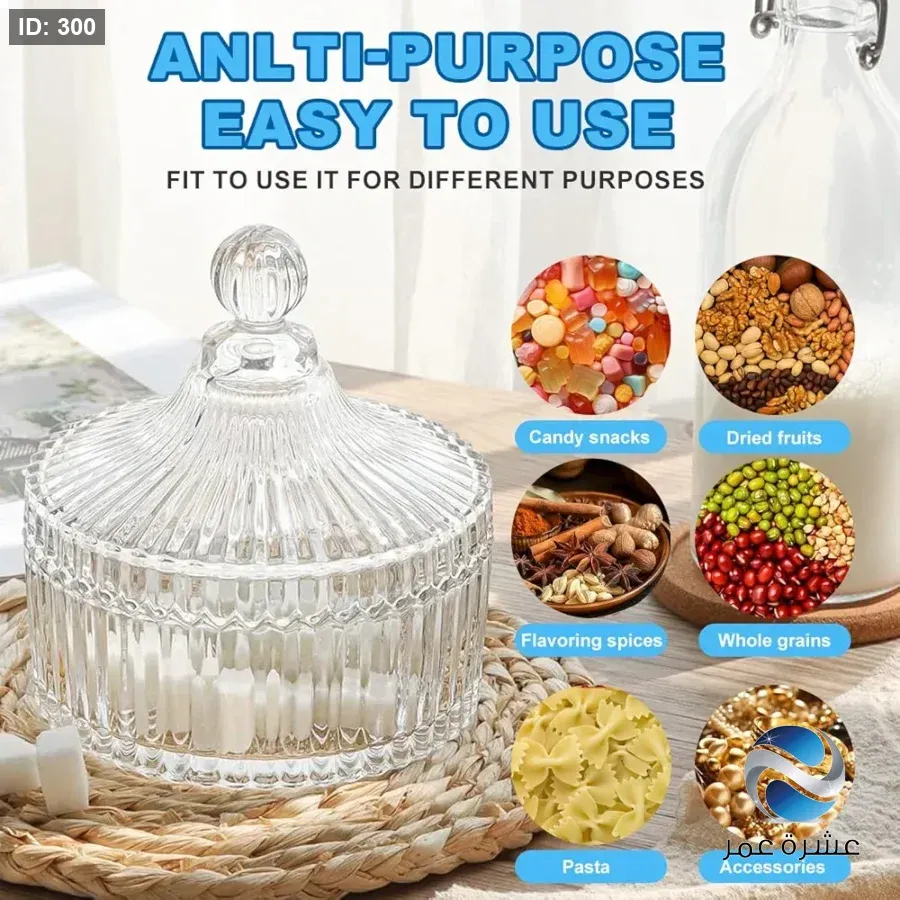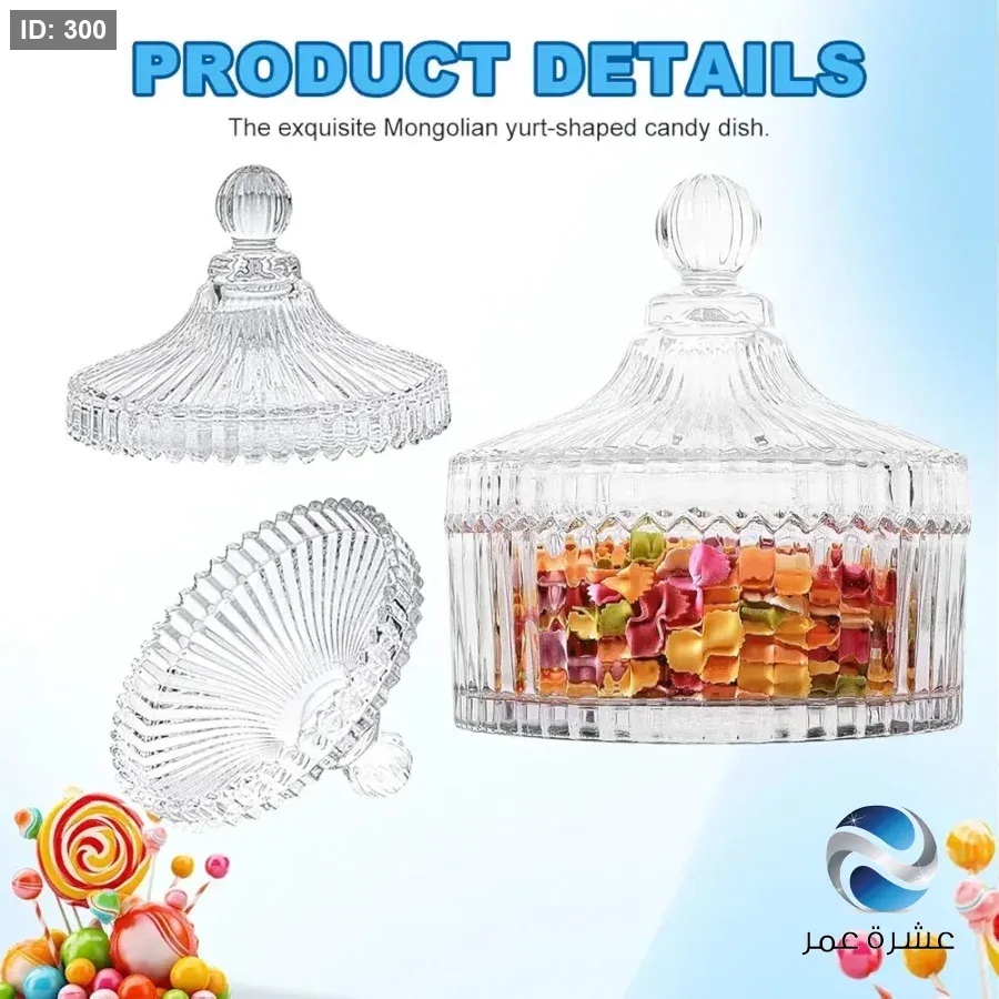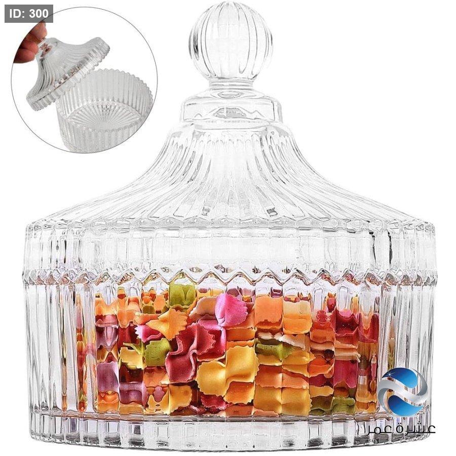 برطمان زجاجي مزخرف بلمسة نهائية شفافة وتصميم مضلع، مناسب لتقديم الحلوى أو تخزين الأشياء الصغيرة