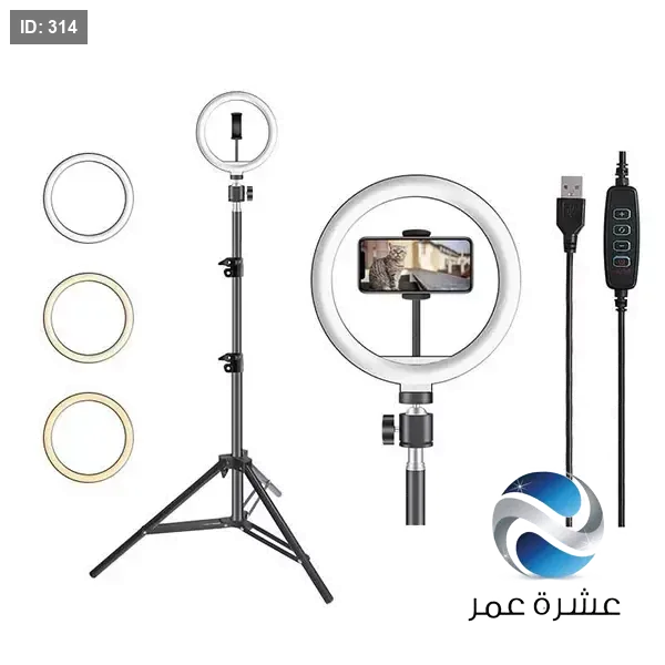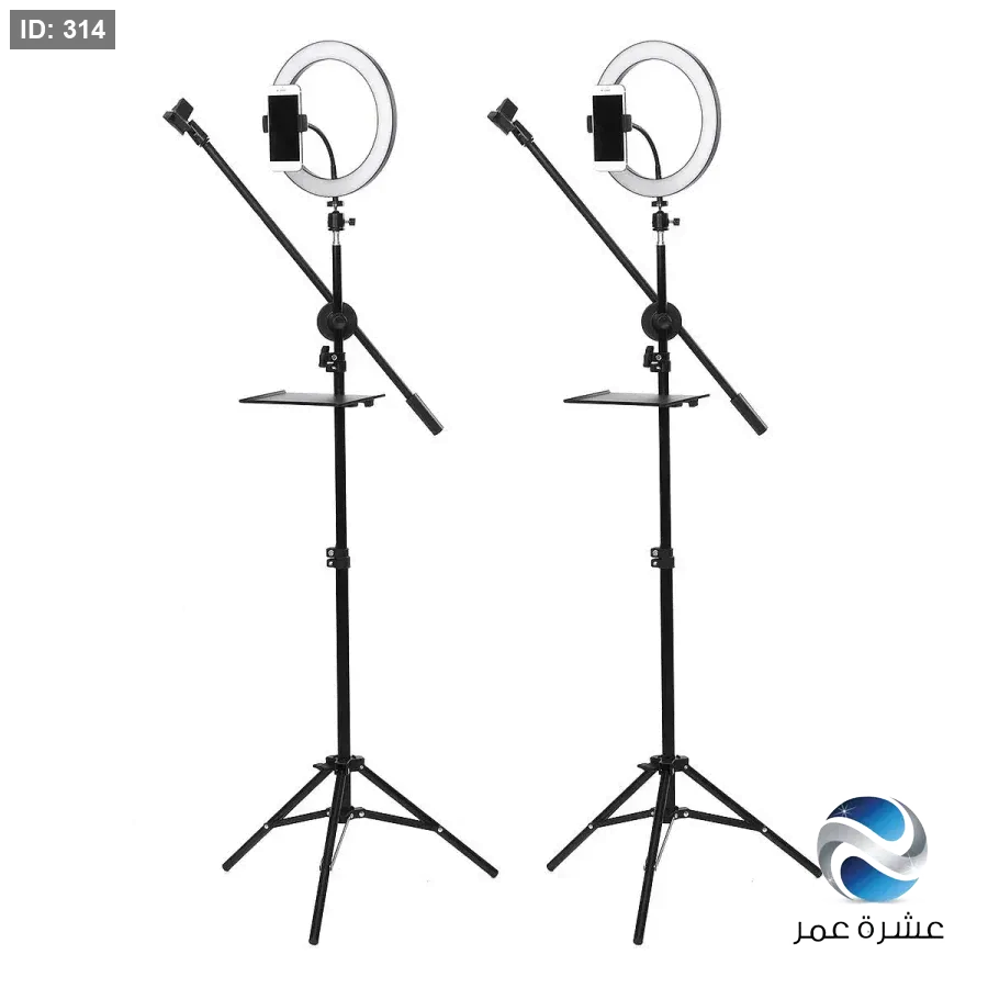 - المكونات: تتضمن المجموعة عادةً مصباح LED حلقي وحامل ثلاثي القوائم.