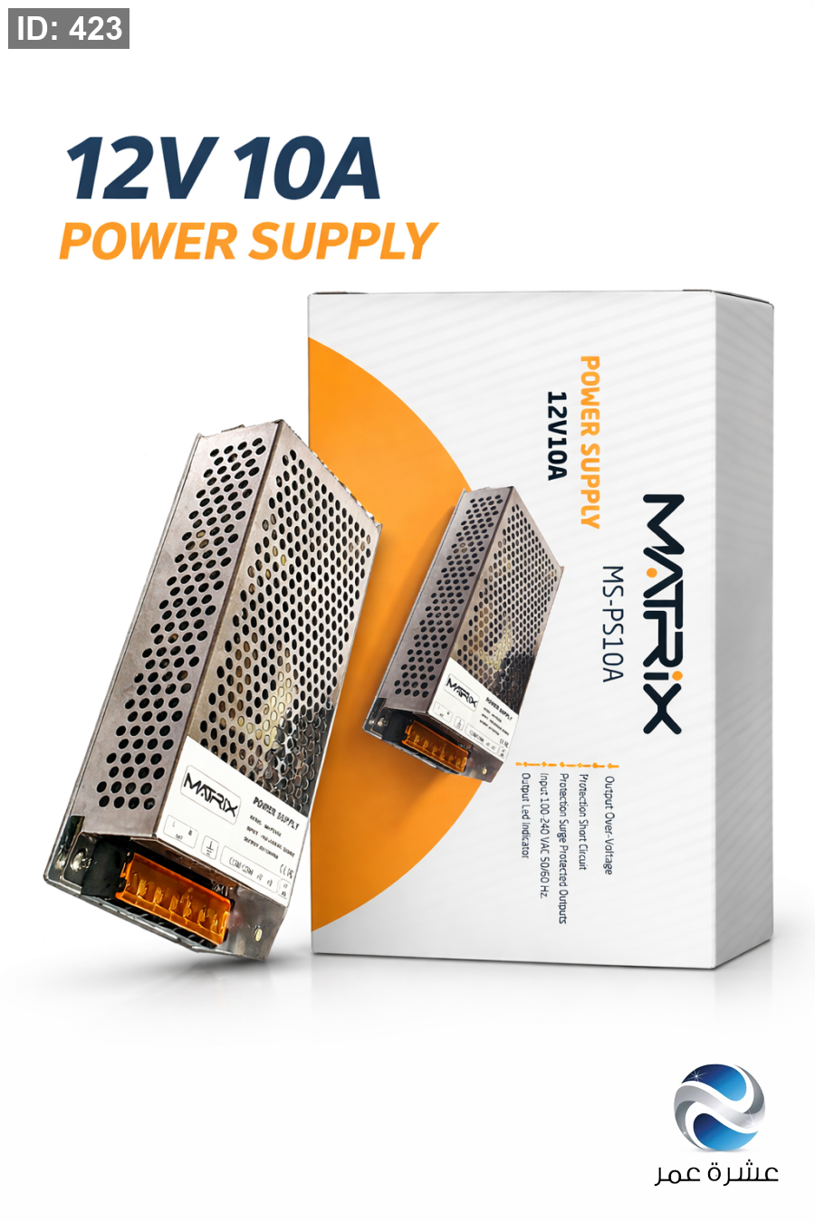 الجهد الكهربائي: يوفر خرجاً بقوة 12 فولت وتيار شدته 10 أمبير. الإدخال: يعمل على جهد إدخال يتراوح بين 100-240 فولت تيار متردد (VAC) بتردد 50/60 هرتز. ميزات الحماية: مزود بحماية ضد زيادة الجهد، وزيادة التيار، والدوائر القصيرة، بالإضافة إلى ميزة حماية الطفرة (Surge Protection). المؤشرات: يحتوي على مؤشر LED يوضح حالة التشغيلالتوصيل متاح إلى المناطق التالية