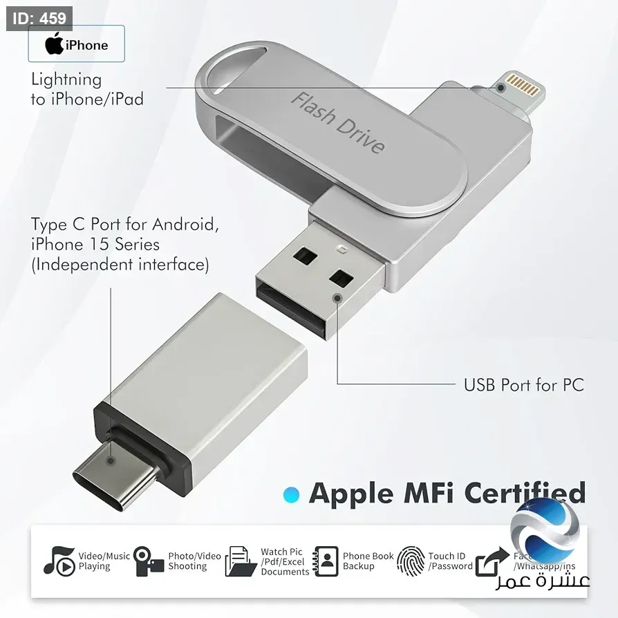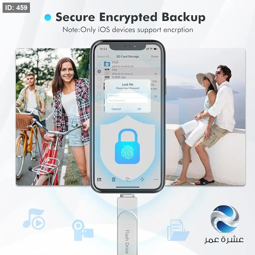 - المميزات: يتيح نقل الصور، والفيديوهات، والموسيقى مباشرة، ويدعم حماية البيانات بكلمة مرور وبصمة الإصبع (Touch ID)