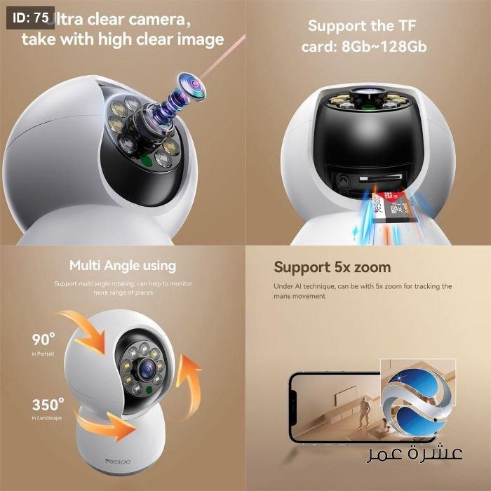 - زاوية قابلة للتعديل: 350 درجة لليسار واليمين، 90 درجة لأعلى ولأسفل.